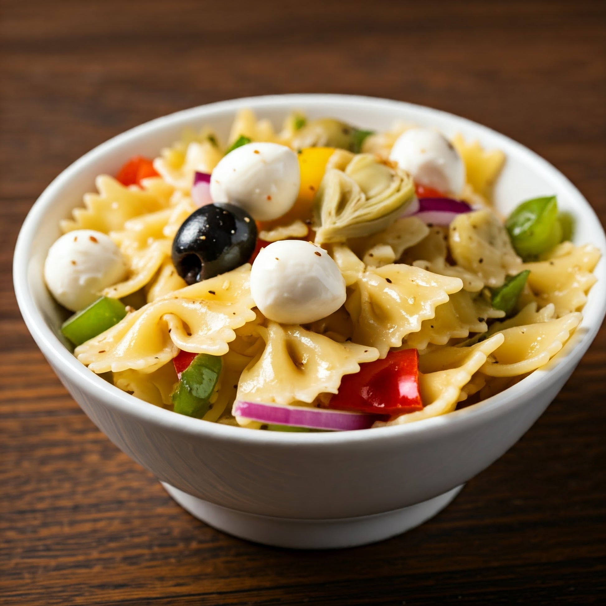 bow tie pasta, artichokes, mozzarella, olives, and balsamic vinaigrette